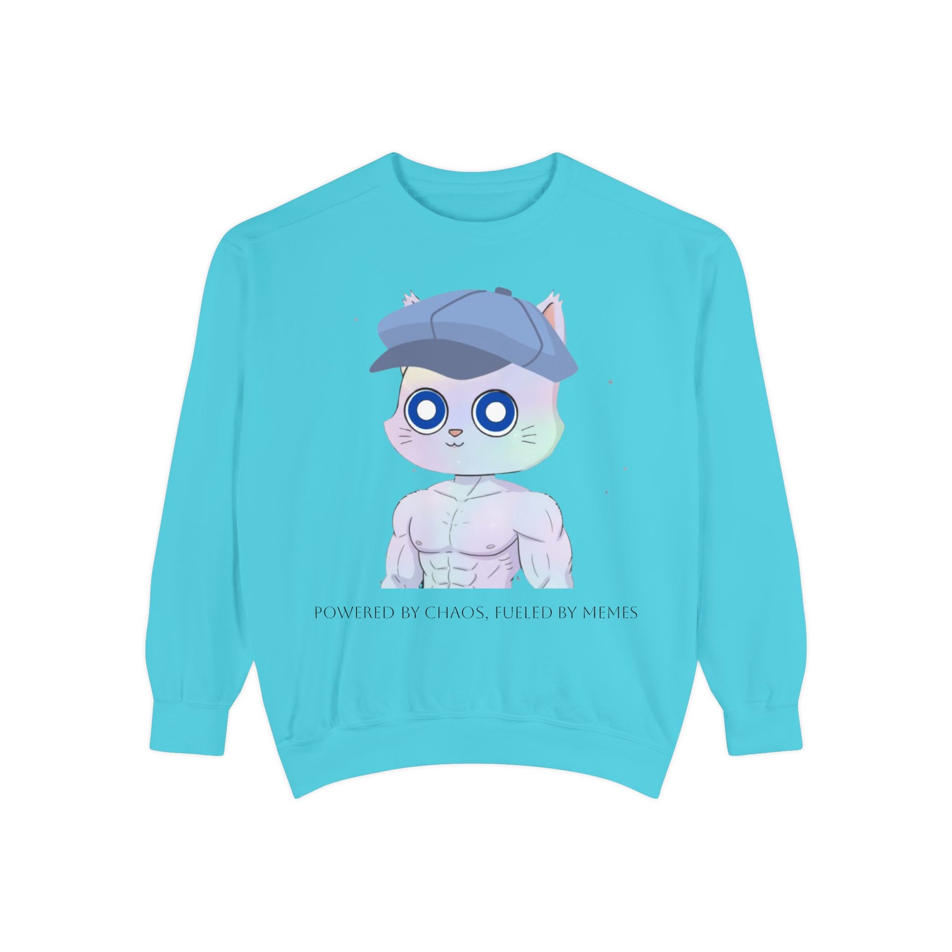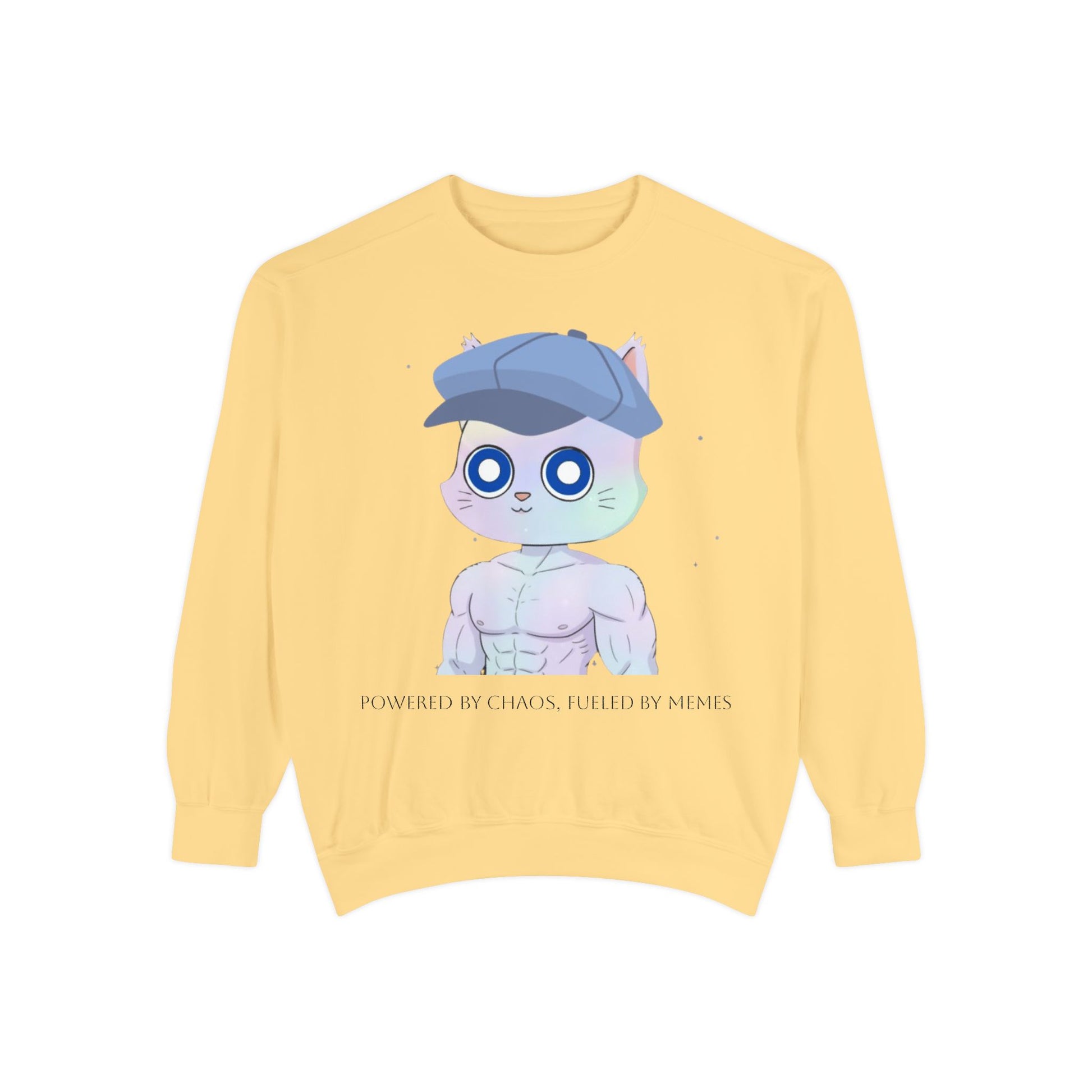 Cute Cartoon Cat Sweatshirt, Unisex Garment-Dyed Pullover, Cozy Casual Wear, Gift for Cat Lovers, Fun Streetwear