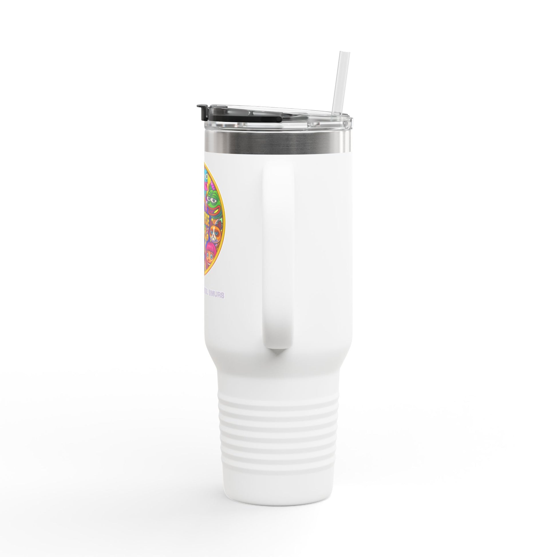 This insulated travel mug is designed for adventure, featuring a durable 100% stainless steel body and a straw with a lid for enhanced convenience on the go. With a generous 40oz (1.183l) capacity, it keeps your beverages at the perfect temperature thanks to its double-wall insulation. The powder-coated finish adds a sleek touch and is available in eight vibrant color variants so you can find that perfect match.Â